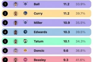 5人单赛季场均出手10+三分,联盟历史首次