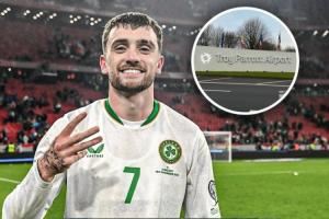 在爱尔兰最后3轮全胜,晋级附加赛的过程中,最后两场独进5球的前锋帕洛特无疑是最大功臣。对此,执行国家队迎来送往任务的爱尔兰都柏林机场开玩笑地将官方社媒名称改为“特洛伊·帕洛特机场”,并连发多条动态庆祝:
